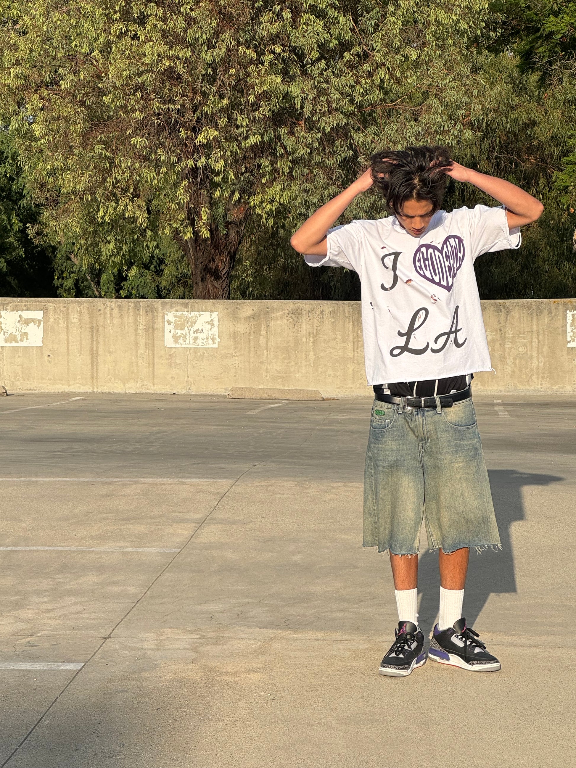 You love LA? ME TOO. (WHITE VERSION) PRINTED w/ DTG & PUFF PRINT ON HEAVY WEIGHT SUSTAINABLE TEES