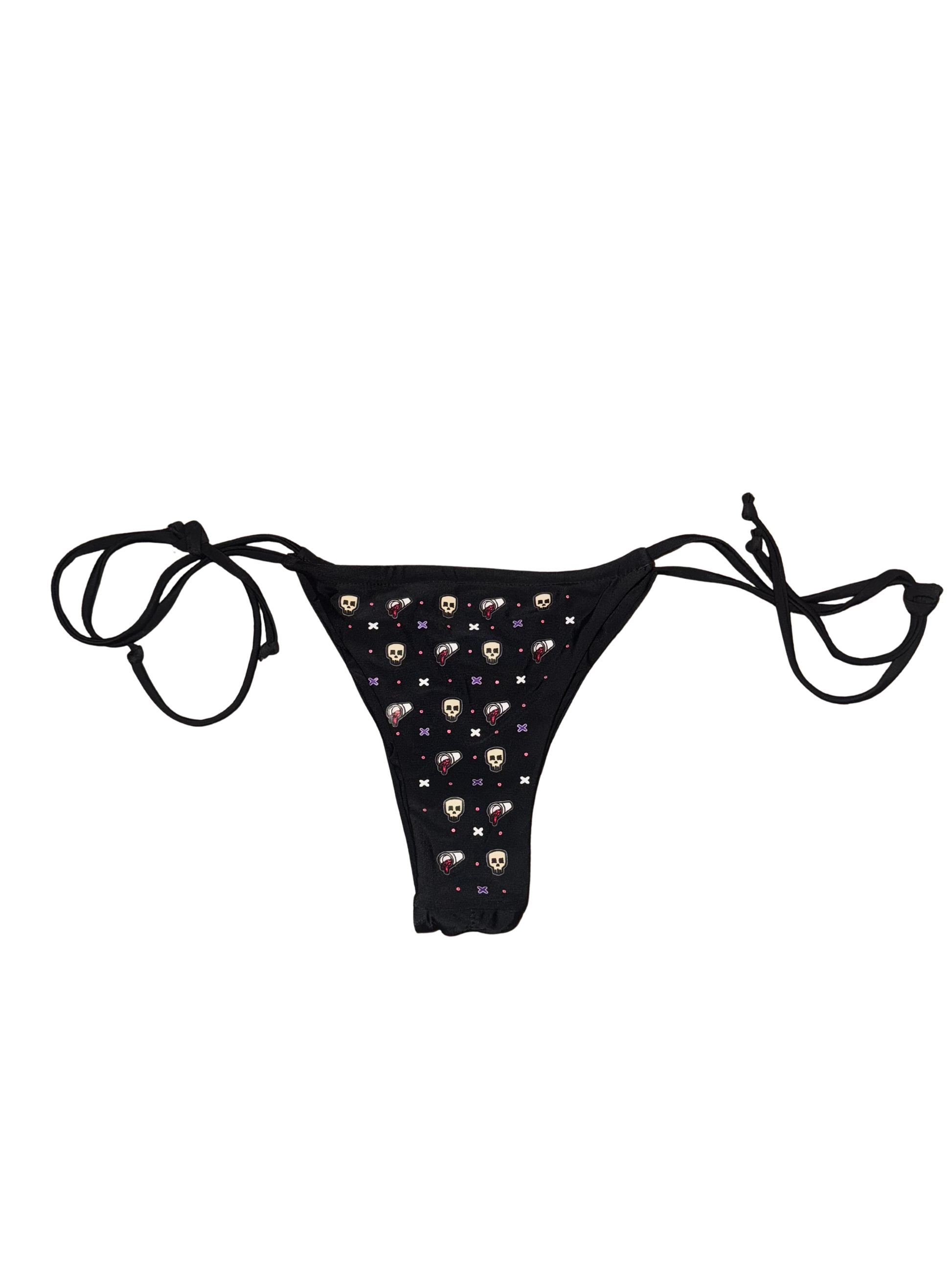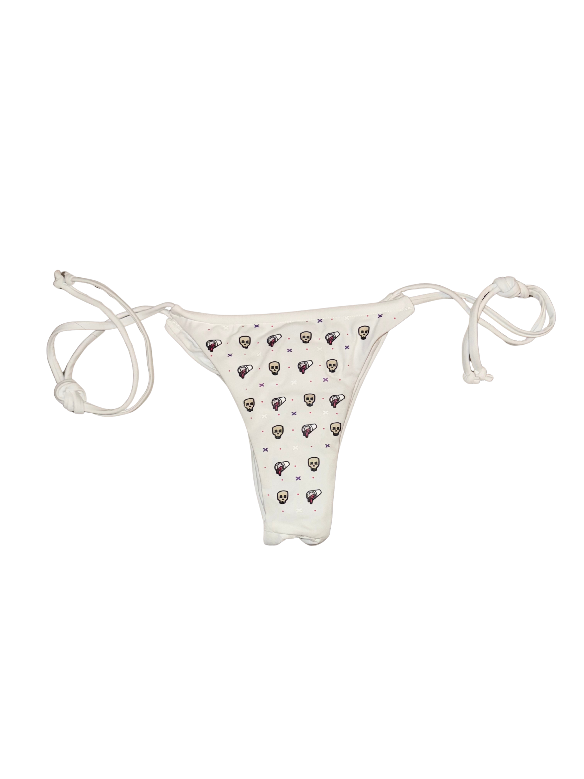this cheeky essential hits with attitude and comfort. the Skull/Cup Bottom is a side-tie thong cut with high leg rise made for sun, pool days, or festival fits